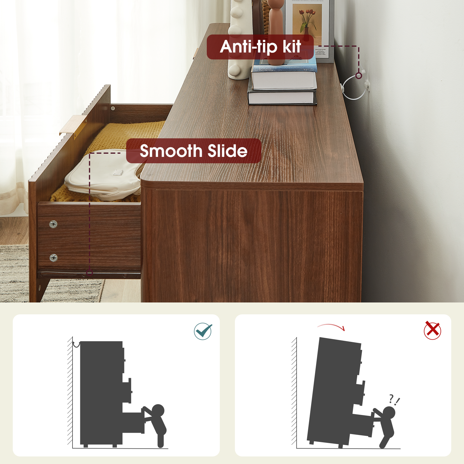 - 【Built to Last, Crafted for Safety】 Constructed with thick engineered wood panels and supported by a sturdy base, this dresser offers long-lasting stability; Rounded corners and included anti-tip hardware provide added safety for households with children or pets